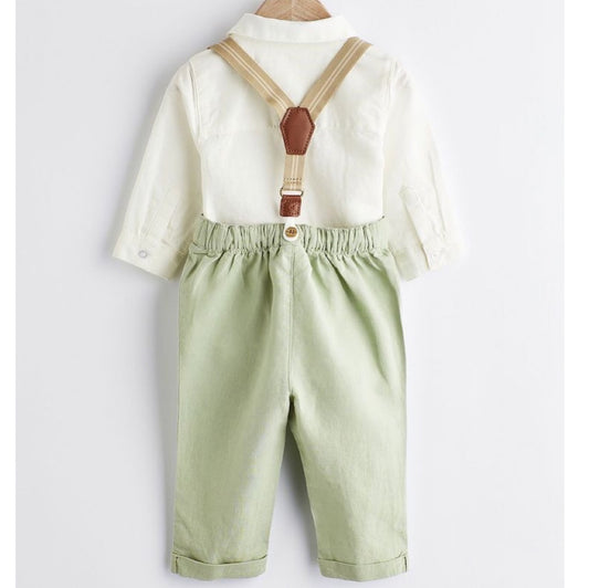 Green Trousers, Bodysuit, Braces with Bow Smart Occasion wear 4 Pc Set