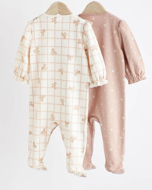 Pink/ Cream Frilled Sleep suit with matching Turban Hats Set
