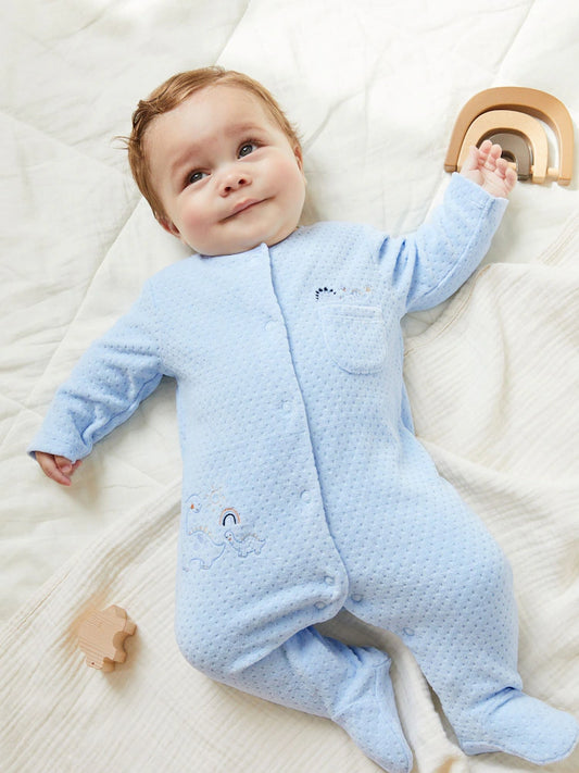 Pale Blue Teddy Bear Textured Baby Sleepsuit