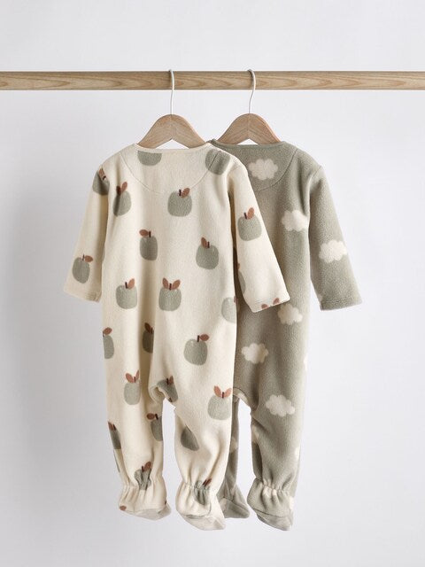 Sage Green 2 Pack Baby Microfleece Sleepsuits