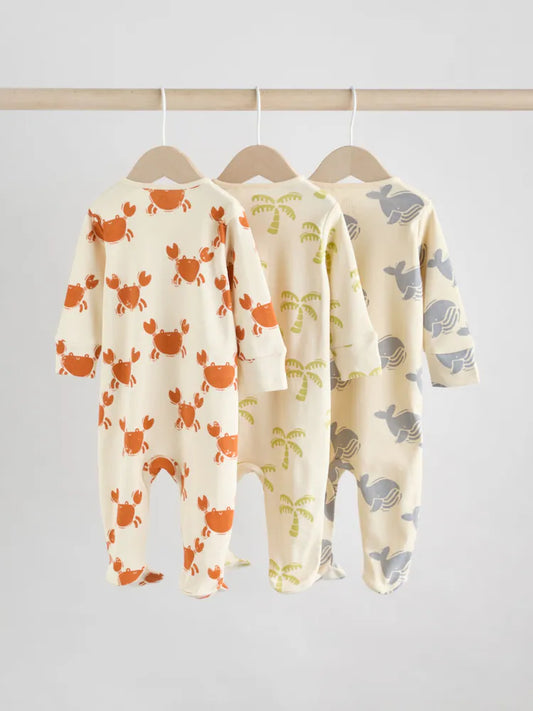 Multi Baby Two Way Zip Sleepsuits 3 Pack
