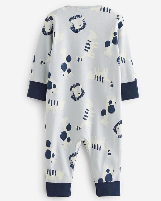 Blue/Cream Star Two Way Zip Fleece Lined Baby Sleepsuit