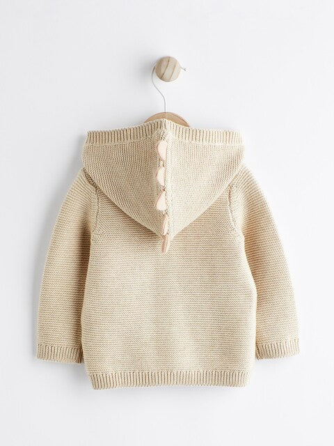 Cream Dinosaur Baby Knitted Hooded Cardigan