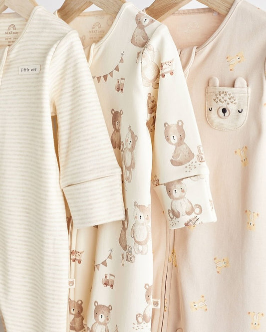 Cream Two Way Zip Fleece Lined Baby Sleepsuit