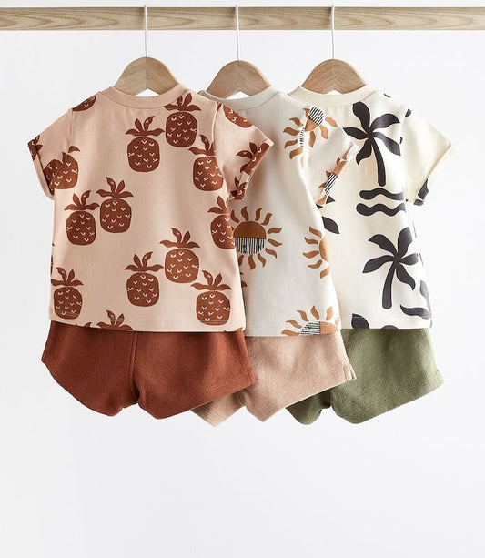 Mono Shirt & texture Shorts 3 Pack Set