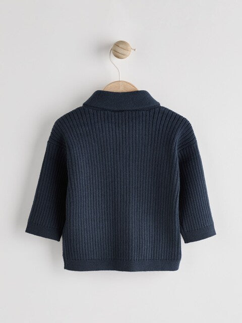 Navy Blue Baby Rib Shawl Knitted Cardigan
