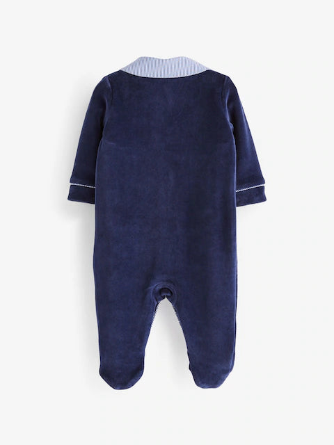 Navy Blue Baby Velour Collared Sleepsuit