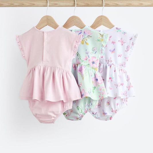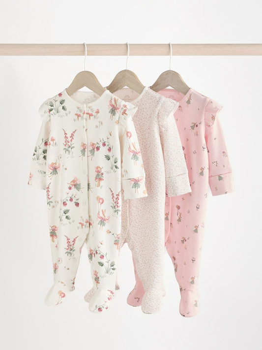 Pink Fairy Sleepsuit 3 Pack with Matching Hats Set