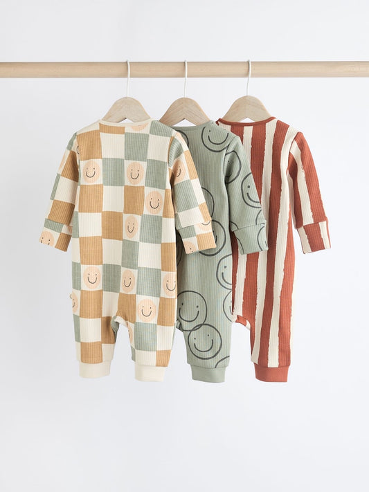 Smiley Zipper Footless Sleepsuit 3 Pack