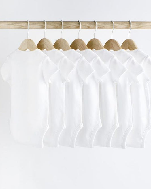 White Printed Short Sleeves Bodysuit 7 Pack Set