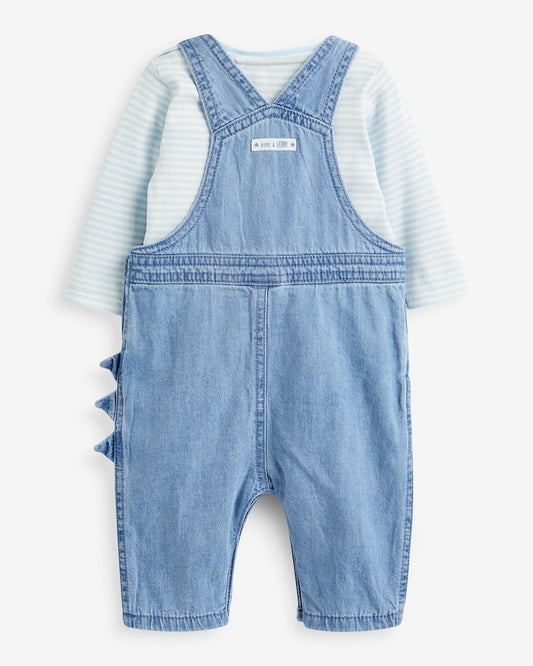 Blue Dino Appliqué Dungarees & Bodysuit Set- Lined