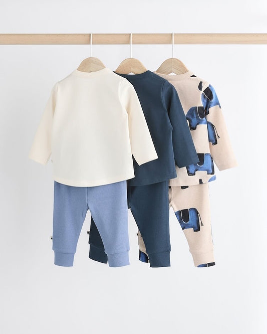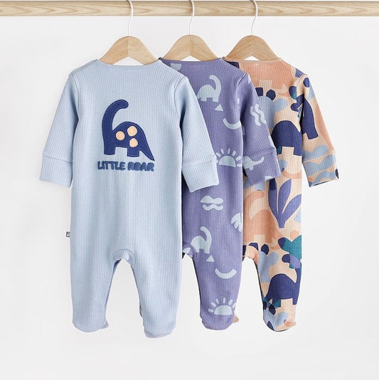 Blue Elephant Zipper Sleepsuit 3 Pack