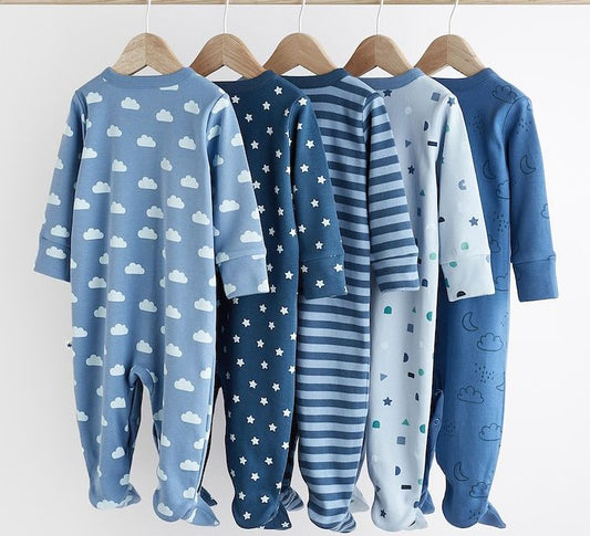 Sold outBlue Mini Prints Sleepsuit 5 Pack.