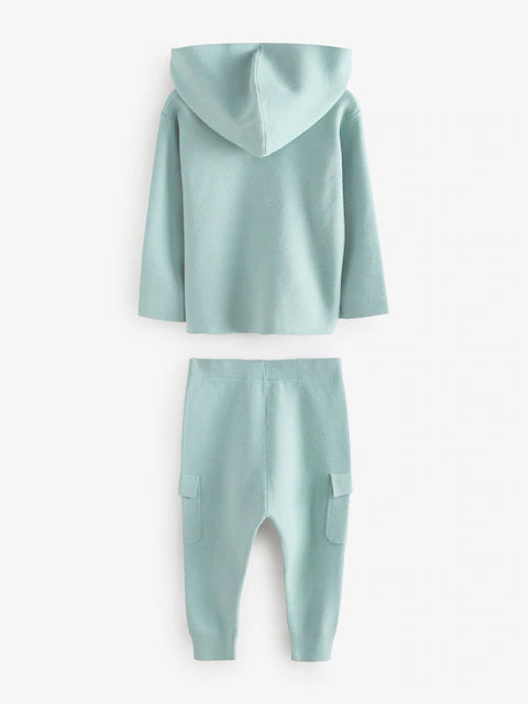 Blue Knitted Zip Neck Utility Hoodie and Joggers Set