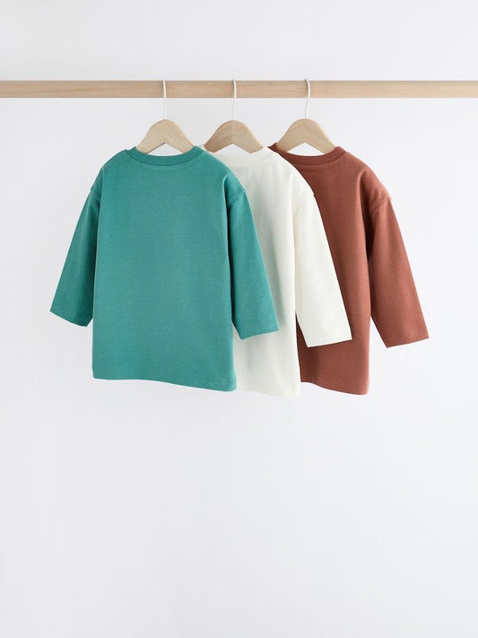 Blue/Brown Long Sleeve Animal Print Character T-Shirts 3 Pack