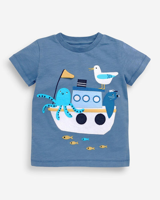 Blue/ Yellow Seagull Appliqués T shirts 3 Pack Set