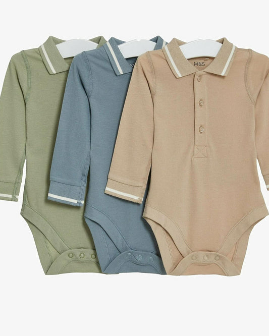 Blue/ Green/ Mink Polo Bodysuits 3 Pack Set