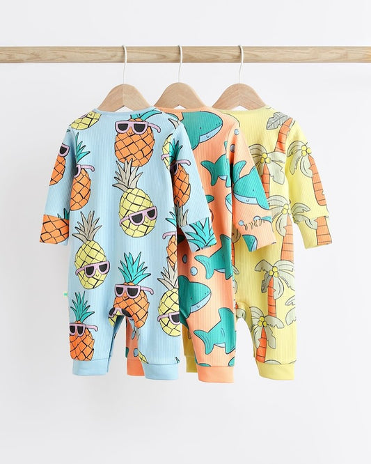 Blue/ Orange Footless Sleepsuit 3 Pack