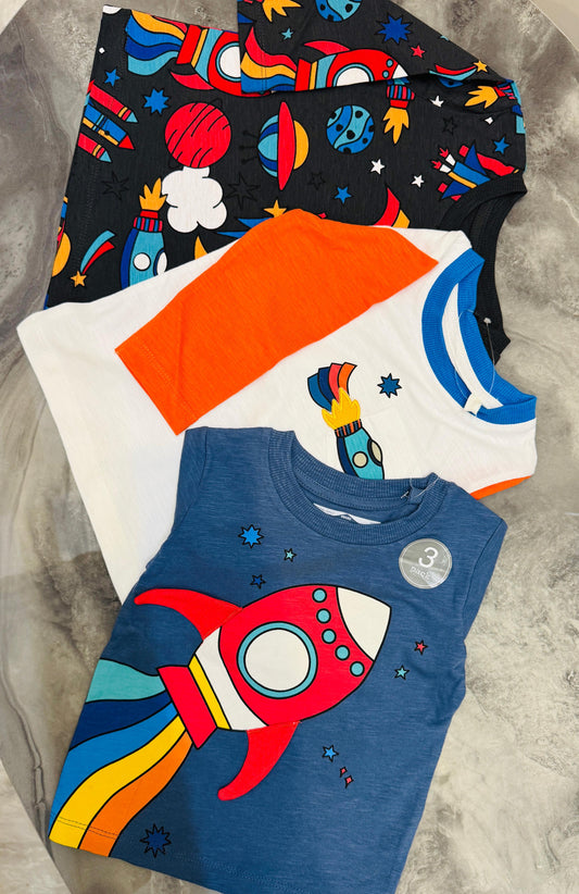 Blue, White and Black Space Shirts Pack of 3.