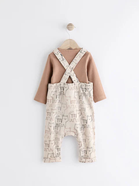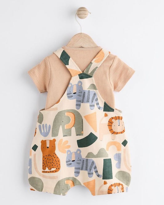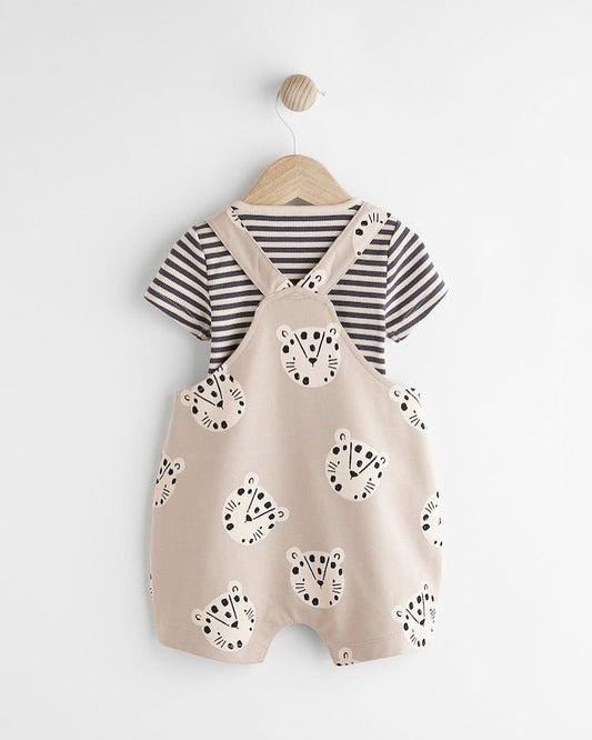 Neutral Tiger Jersey Baby Dungarees And Bodysuit Set
