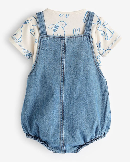 Denim Blue Appliqué Dungarees & Bodysuit Set
