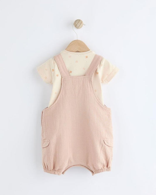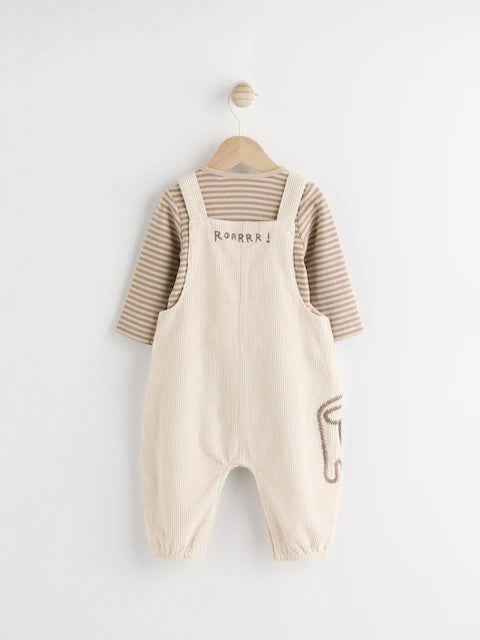 Neutral Tiger Cord Dungarees and Bodysuit Set