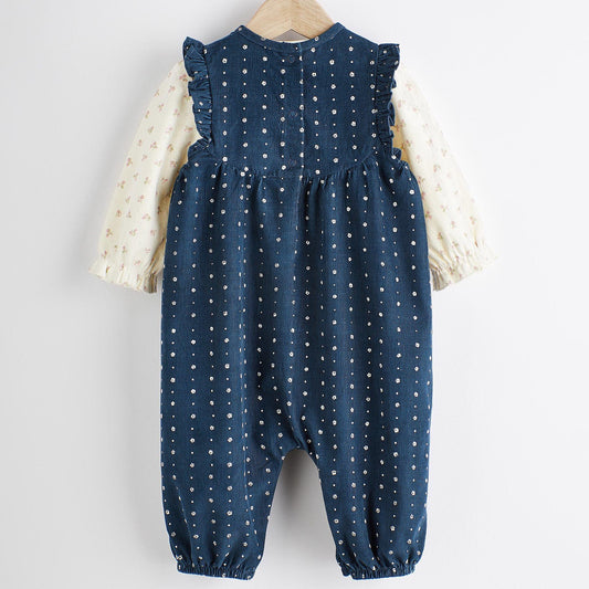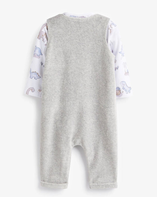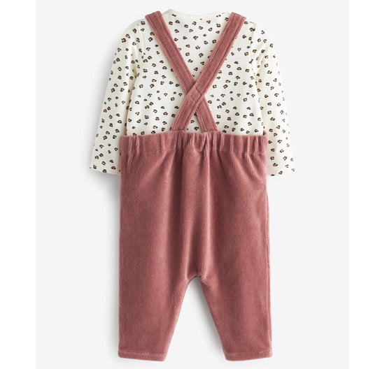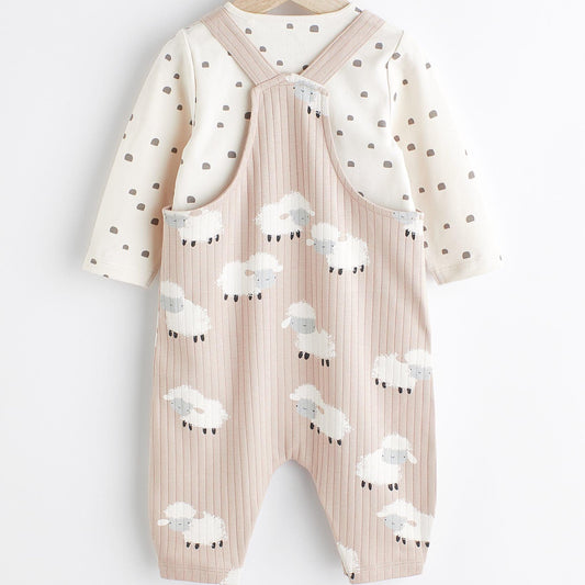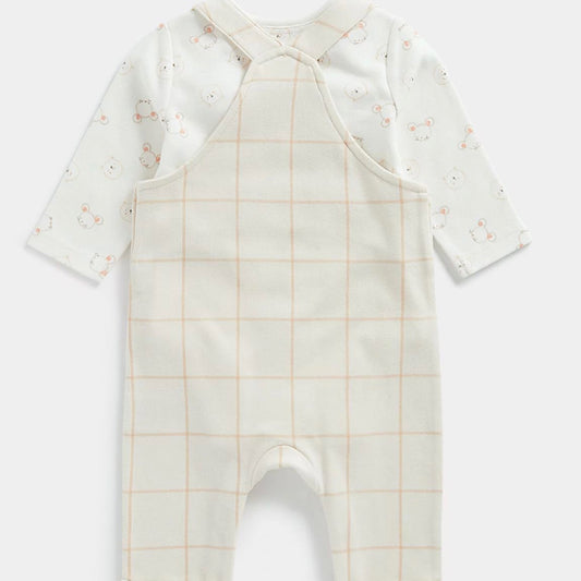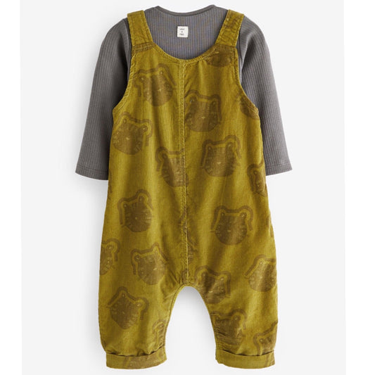 Camouflage Printed, Striped Buttoned Dungaree & Bodysuit Set
