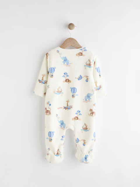 White Ground Fleeced Lined 2 way Zip Sleepsuit