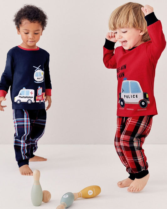 Navy Blue/ Red Emergency Transport Check Appliqué Pyjamas 2 Pack