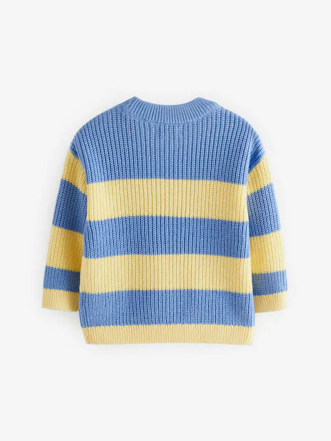 Yellow/Blue Stripe Knitted Crew Neck Jumper