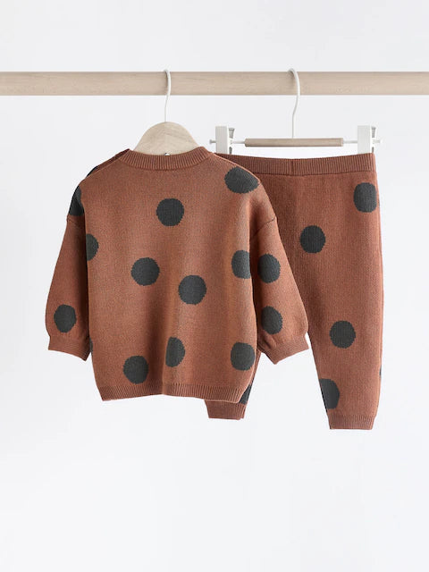 Tan Brown Spot Baby Knitted Jumper and Leggings Set