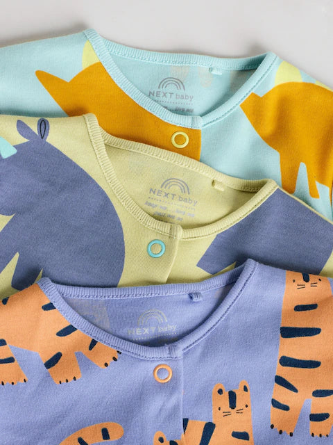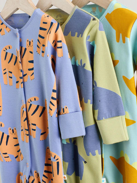 Blue/Green Footless Baby Sleepsuits 3 Pack Designed for comfort and practicality, this three-piece sleepsuit collection features footless designs in calming blue and green tones. The soft, breathable fabric supports healthy temperature regulation throughout the night, while the streamlined cut allows for easy diaper changes without disrupting your baby's rest. Perfect for layering during cooler months or wearing alone in warmer seasons, these versatile sleepsuits grow with your infant through multiple stages. The durable construction withstands frequent washing, making this set an economical choice for everyday wear and backup options.