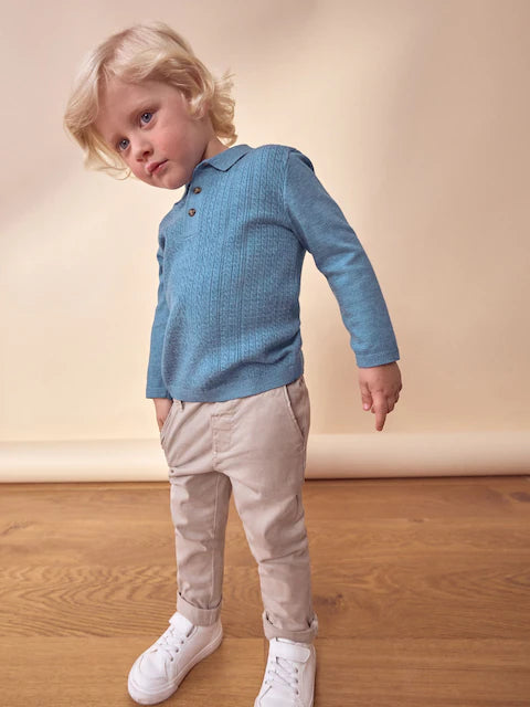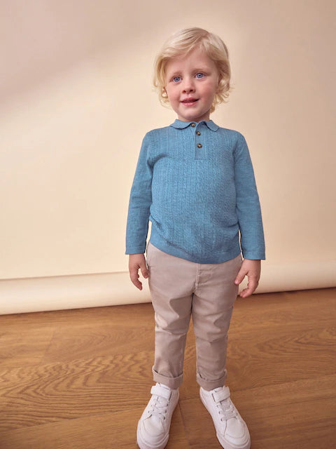 This Blue Long Sleeve Cable Polo Shirt combines classic style with expert tailoring. Crafted from a soft, durable fabric, its cable knit detailing adds texture and visual interest while ensuring comfort and warmth. The long sleeves and polo collar elevate its versatility, making it suitable for both casual and semi-formal occasions. Designed for a refined fit, this shirt balances traditional aesthetics with modern functionality for a polished, professional look.