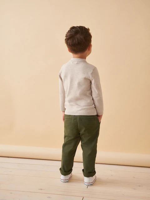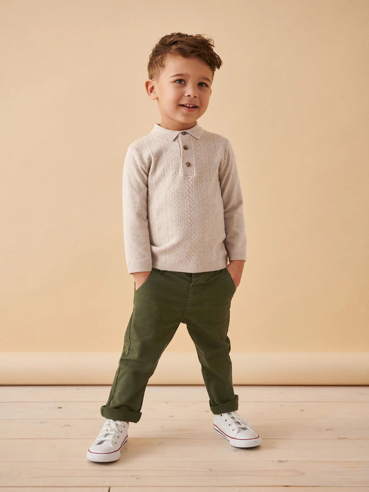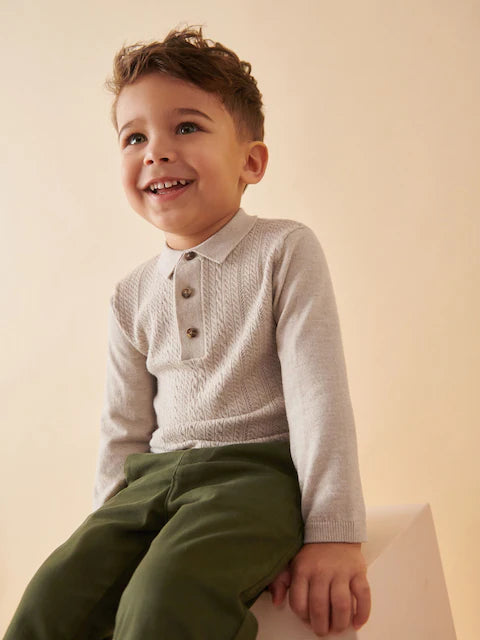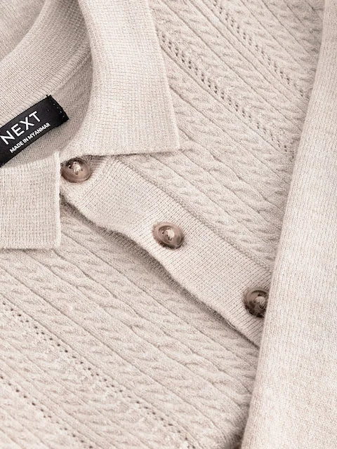 Ecru Long Sleeve Cable Polo Shirt