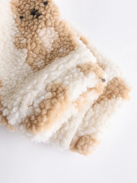 Ecru/Tan Bear Print Cosy Zip Lined Hooded Fleece