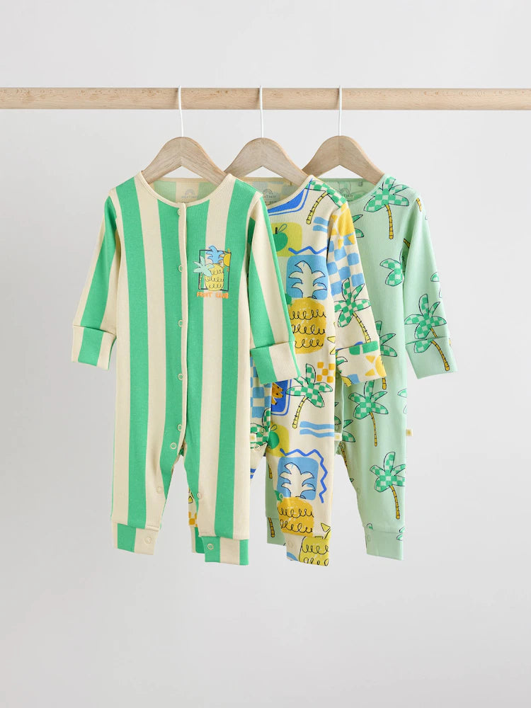 Green Baby Bright Pineapple Sleepsuits 3 Pack