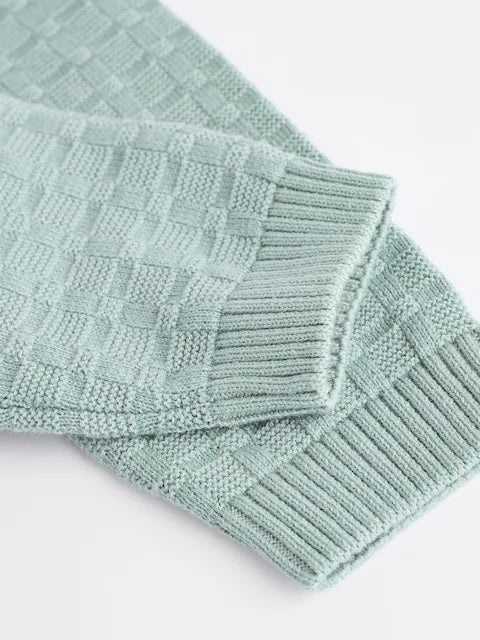 Mineral Blue Baby Textured Knit 100% Cotton Top and Leggings Set