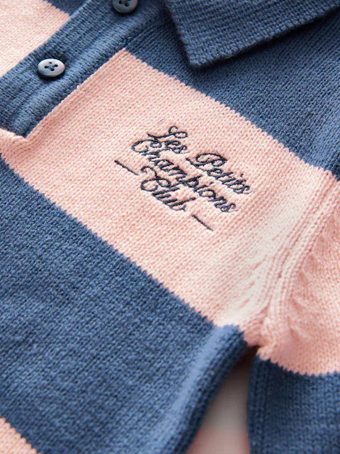 Navy Blue/Pink Stripe Knitted Rugby Shirt