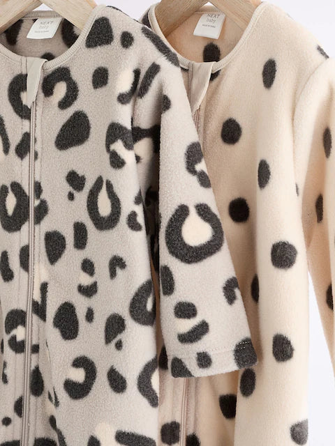 Neutral Animal Baby Microfleece Zip Sleepsuits 2 Pack
