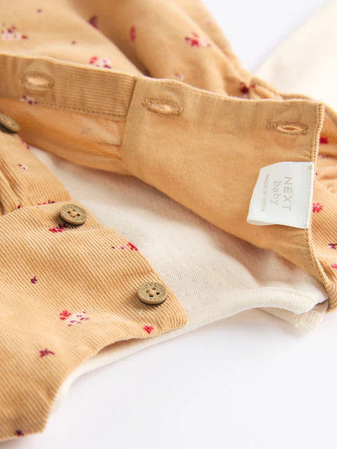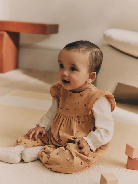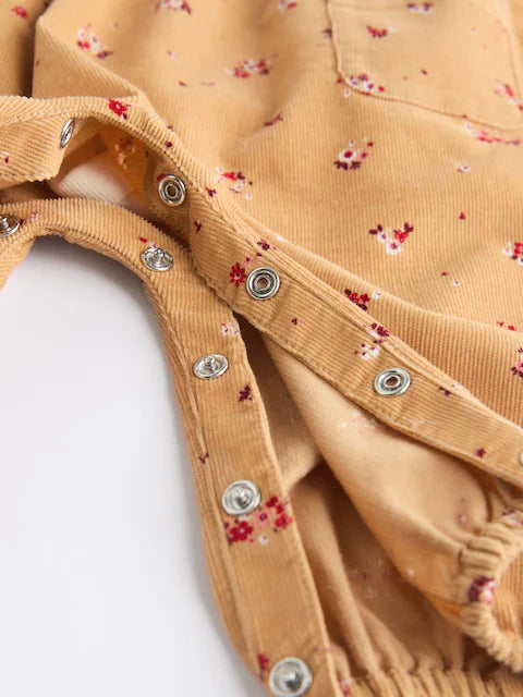 Ochre Yellow Ditsy Floral Baby Corduroy 100% Cotton Dungarees and Long Sleeve