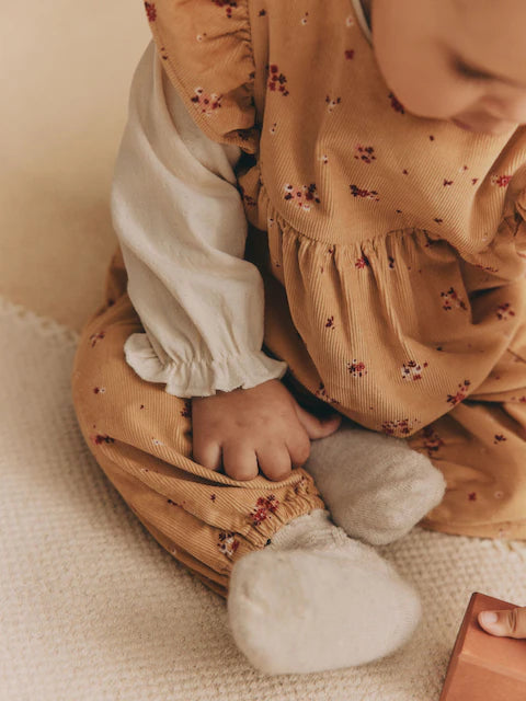 Crafted from premium 100% cotton corduroy, these ochre yellow dungarees combine durability with comfort for active infants. The charming ditsy floral pattern adds visual interest while the coordinating long sleeve top provides complete coverage. The classic dungaree silhouette features adjustable straps and secure fastenings, ensuring a secure fit as your baby grows. Soft corduroy fabric resists pilling and maintains its shape through frequent washing, making these pieces ideal for everyday wear and playtime adventures.