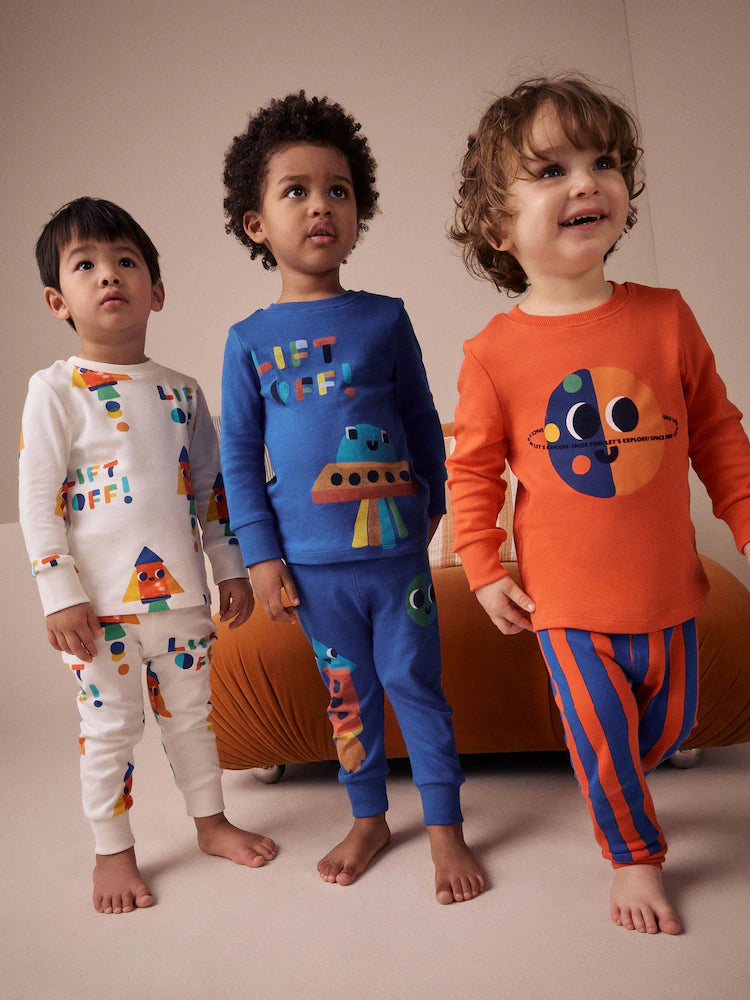 Orange/Navy Space 3 Pack Pyjamas