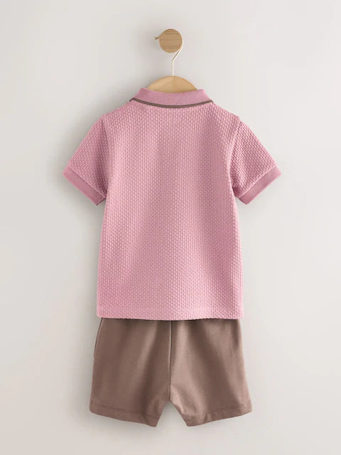 Pink Short Sleeve Textured Polo Shirt and Shorts Set