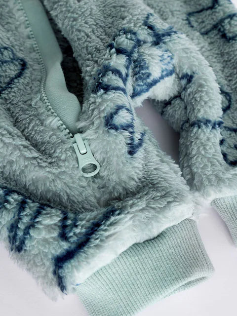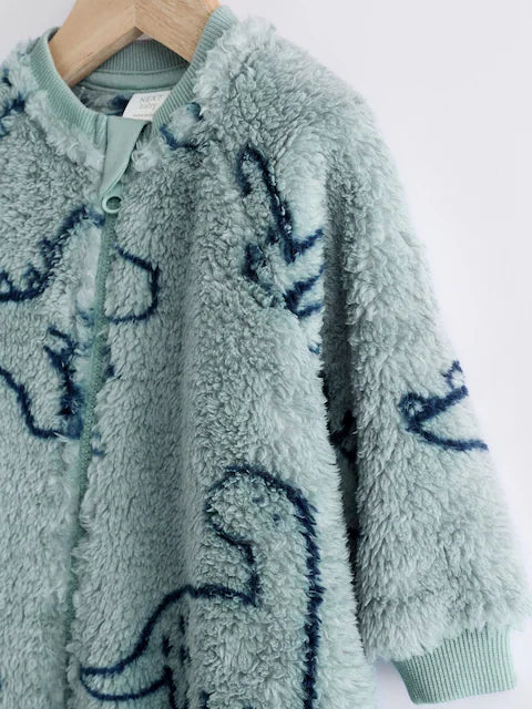Teal Blue Character Baby Fleece Zip Sleepsuit